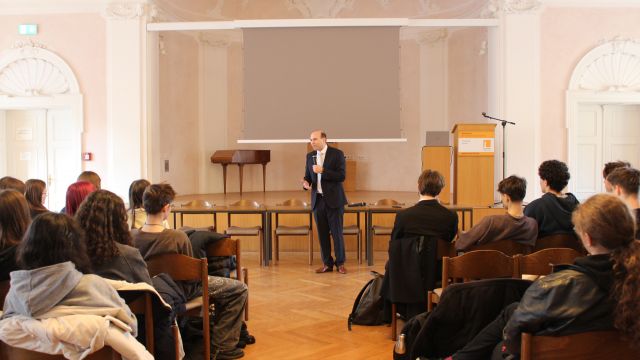 Abschließend stellte sich Oßner den kritischen Fragen der Schülerinnen und Schüler. So wurde unter anderem gefragt, ob er als Politiker Satiresendungen wie die "heute-show" gut fände. Oßner sagte, Satire bereichere die Demokratie, wünsche sich jedoch noch mehr Ausgewogenheit, um der häufig kritisch geäußerten Tendenziösität entgegenzutreten.